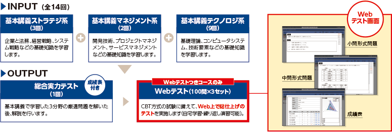 TACの基本スタイルである「効率よく合格レベルへ」をテーマに、インプットとアウトプットをバランスよく取り入れたスタンダードコースです。IT資格ビギナーにも無理なく学習できるカリキュラムを採用しています。