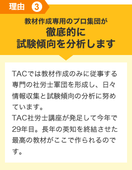 さらに合格実績はもちろん、TACには社会保険労務士試験に精通した講師や長年蓄積してきた合格するためのノウハウがあります。