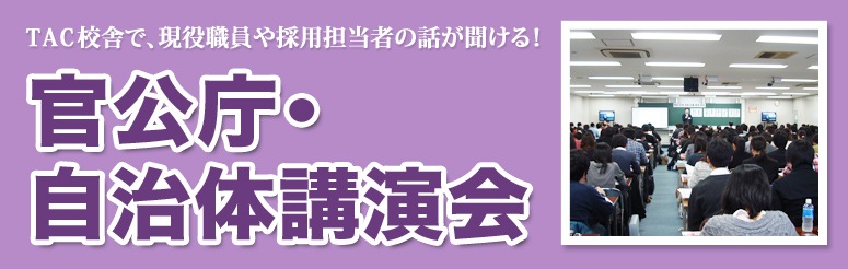 官公庁・自治体 業務説明会とは、自治体や官公庁の現役職員や人事担当者をお招きし、実際の業務内容や現在力を入れて取り組んでいる政策などについてお話しいただく、貴重な情報が満載の説明会です。