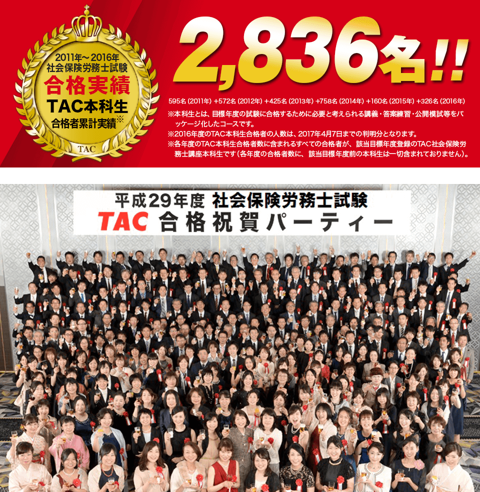 TAC社会保険労務士講座は1986年に開講し、38年超の実績。
