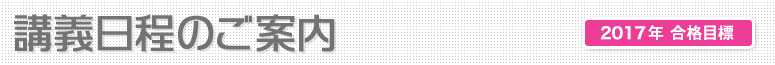 教室講座講義日程、ビデオブース講座視聴開始日、Web配信開始日・各通信講座教材発送日程をご確認いただけます。