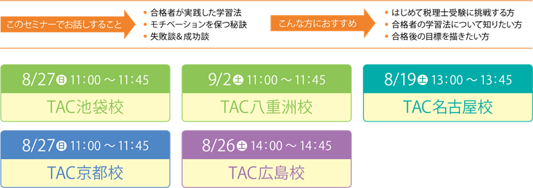 みなさんの不安・疑問にTAC講師陣が応えます!これから学習を始める方は科目選択や学習方法を、今年受験された方は試験結果を踏まえた今後の学習プランを講師と一緒に考えていきましょう!