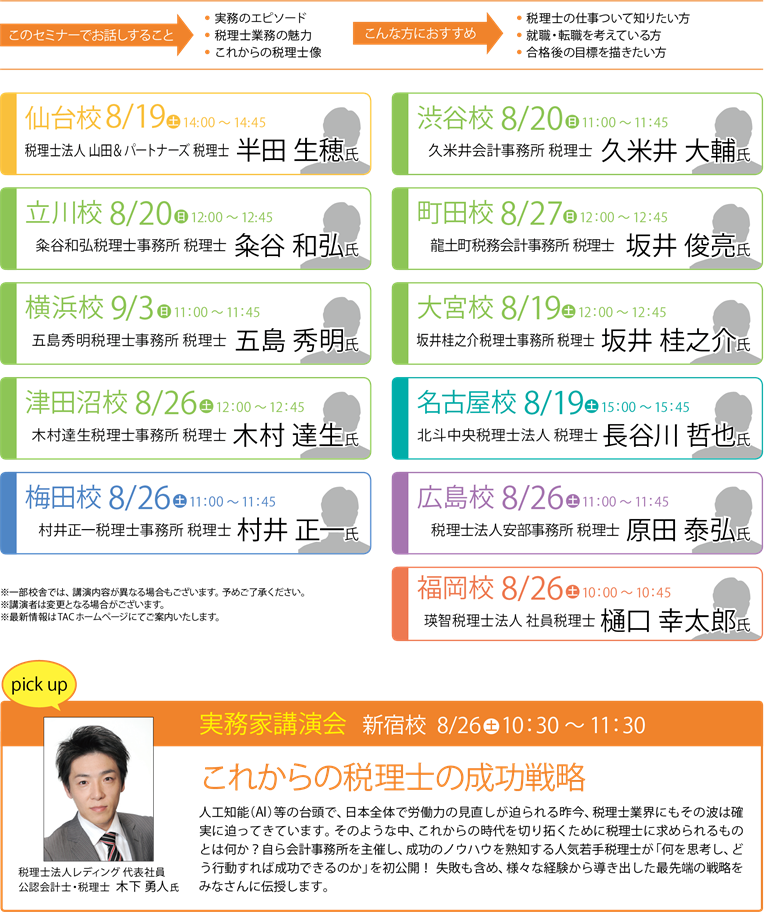 税理士として活躍するために「今」しておくべき準備について語ります。初学者はもちろん、受験経験者も必聴!セミナー終了後は「個別学習相談会」も担当します。