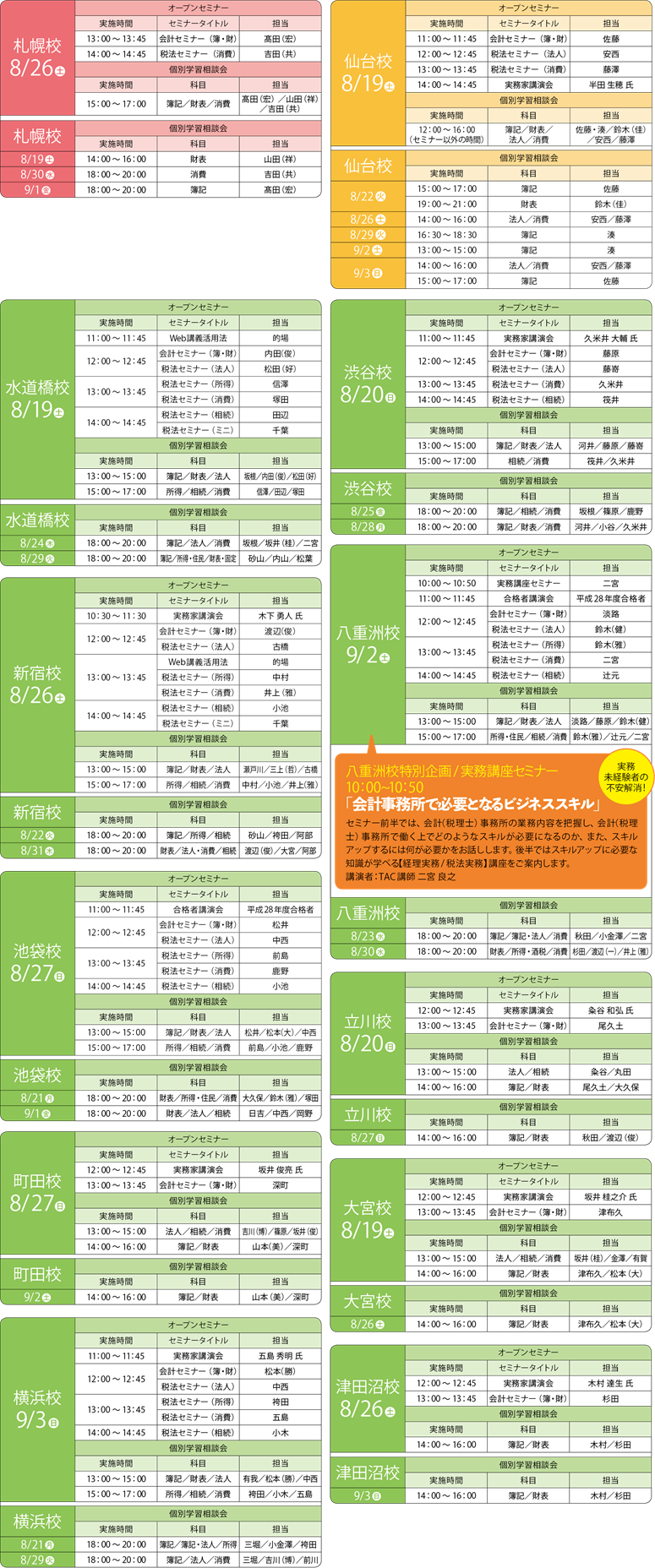 特別セミナー・解答解説会・個別学習相談会・就職イベント