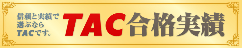 - TAC合格者とは、TACにおいて合格するための講義、公開模試等がすべて含まれたコースで、税理士試験合格に必要な受験科目の半数以上を受講された方を対象としています。TAC合格者には、直前対策講座のみの受講生、公開模試のみの受講生、出版教材のみの購入者、資料請求者、情報提供のみの登録者、無料の役務享受者は一切含まれておりません。
