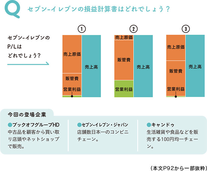 萌さん それぞれブックオフ、セブン-イレブン、キャンドゥのP/Lなんだけど、3社の中からセブン-イレブンを選ぶの。