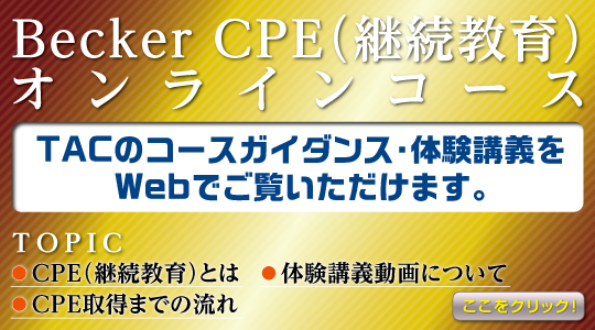 この度は、TAC CPE(継続教育) 講座 WEB サイトにアクセスいただき、誠にありがとうございます。
