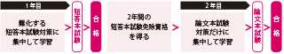 | カリキュラム内容 | 1年目 短答対策(インプット+アウトプット) +次年度を見据えた論文対策(インプット) 2年目 論文対策(インプット+アウトプット) |