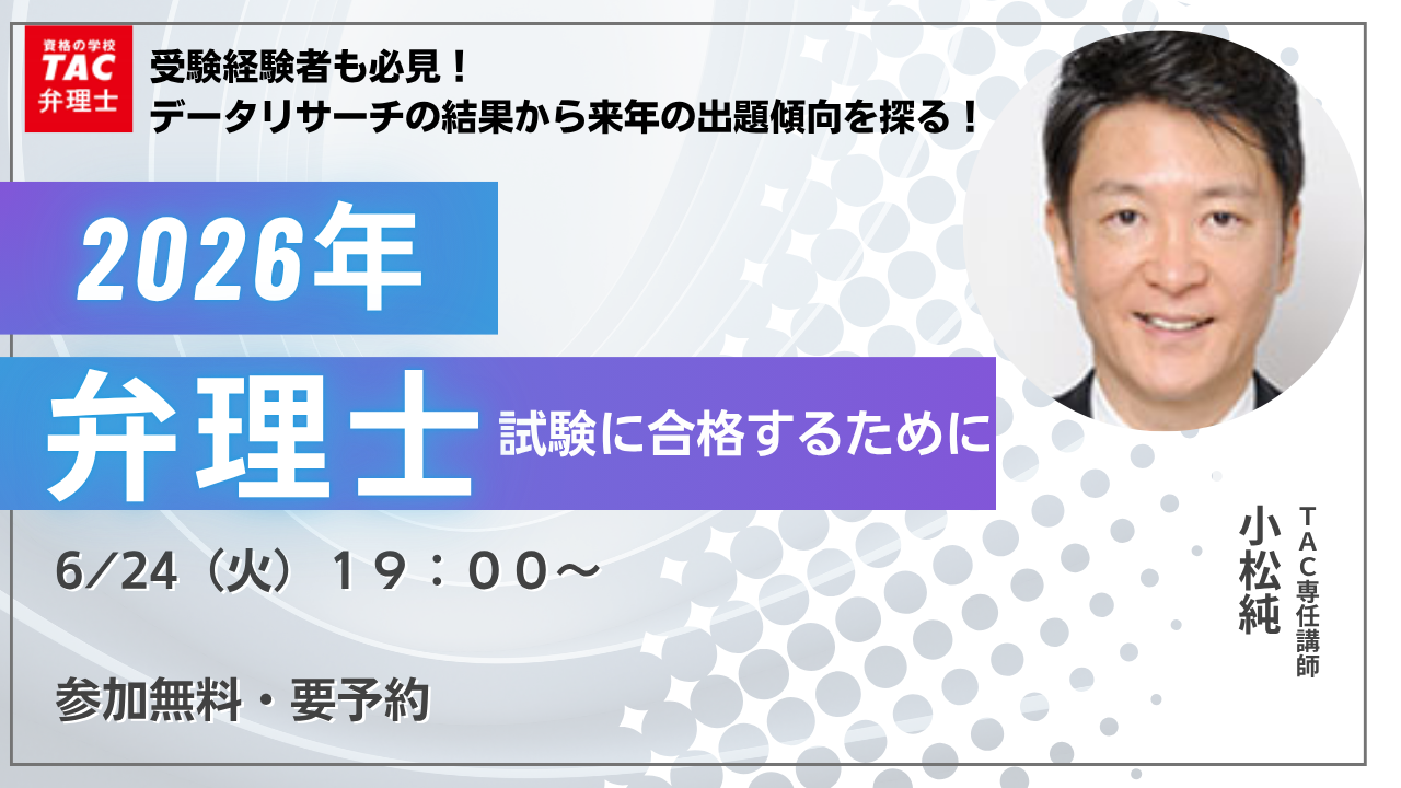【内容(予定)】TAC弁理士講座専任講師の齋藤晶子講師が2026年4月から開講予定の本科生についてそれぞれの特長をお話します。講座選択の参考にしてください。。ウェビナーの後半にはQAを用いた質疑応答も行います。
