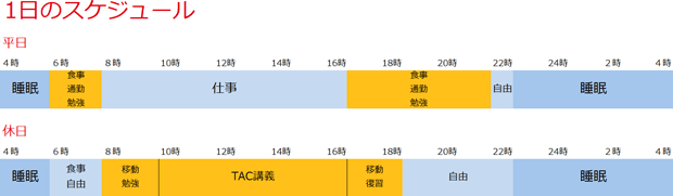 短答 2017年8月頃から過去問10年分を繰り返し解くことを中心に行い、2018年3月までに計6周はしました。過去問を解く際は、問題文や解説を一言一句理解できることや、問題文を読むスピードを上げることを意識して取り組んでいました。解説を理解するためには条文を理解する必要もありますので、解いた問題に関連する条文の読み込みも行っていました。 そのために始めのうちは理解するのに時間を要したので進むスピードが非常に遅かったのですが、着実に進めた結果、問題文を正確に理解できるようになったばかりでなく読むスピードが上がり、短答模試では3時間も経たないうちに解き終えて退室していましたが、毎回8割以上正解できました。 論文必須 論文答練を受講していた時期(2018年1月-3月)は、答練とその復習をしていました。 そして、短答試験終了後に過去問と答練の問題の解き直しと論点の暗記を行いました。 論点の暗記はひたすら音読・暗唱することによって行い、音声認識機能を使って何文字分声に出したか量って勉強量の確認をしていました。そのため、基本的に自宅で学習していました。書く場合よりも短時間でできますし、記憶に定着しやすいですのでおススメです。論文ファイナルチェックシートに記載されている論点は、2週間程度でほぼ暗記することができました。 論文選択 免除のためなし。 口述 論文試験の合格発表後に勉強を開始し、TACの「口述試験バイブル」の丸暗記と、重要条文の要件・効果の暗記をしました。