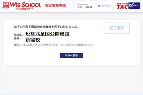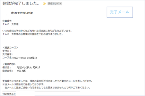 - 模試受験手続き完了時などを含めメールを送信させていただきます。送信先のメールアドレスはTAC WEB SCHOOLマイページ登録時にご登録いただいたメールアドレスです。