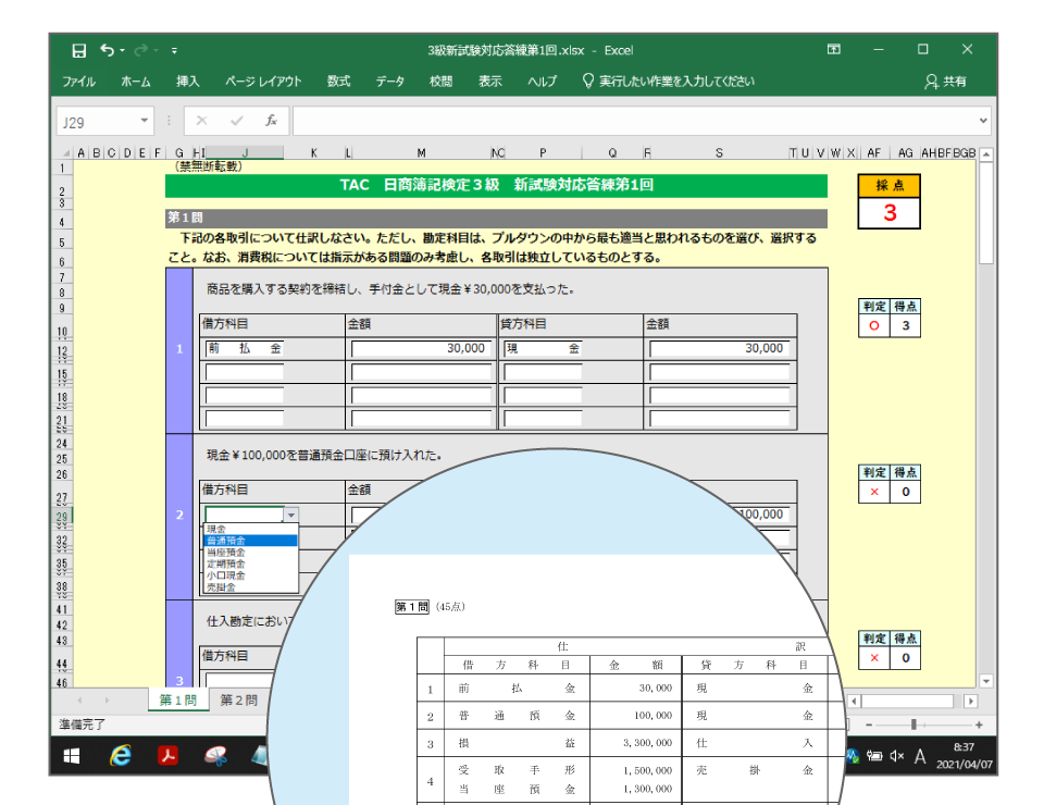 全3回のTA予想想問題をペーパーで練習する形式ですが、第1回分はExcel版の解答入力フォームも付いているのでネット試験の解答をイメージをつかむことができます!