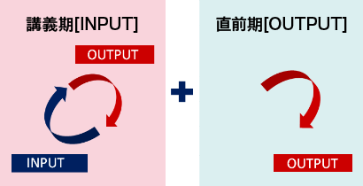 「講義期(INPUT)」の中にも「INPUT」と「OUTPUT」の連携があるので、しっかりと知識定着をはかることができます。