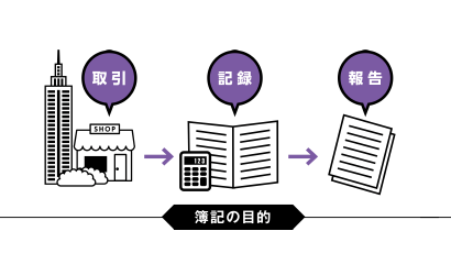 簿記3級では小規模な株式会社を対象にした「取引」→「記録」→「報告」という一連の手続きを学びます。