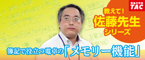 計算機器として便利な電卓。簿記の勉強でも使用します。四則演算機能はもちろんのこと、その他の機能で便利なものもあります。その代表的なものがメモリーキー。使い慣れると、とても便利です。お馴染みTACの佐藤講師がその便利さをトクとご紹介いたします。 続きを読む »