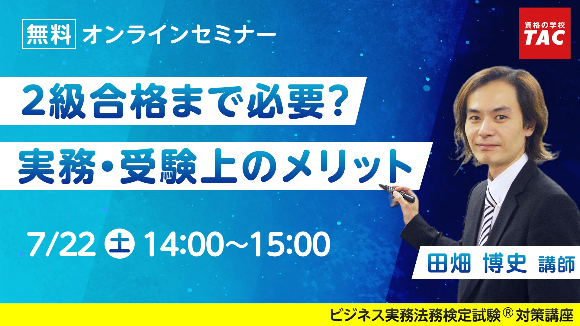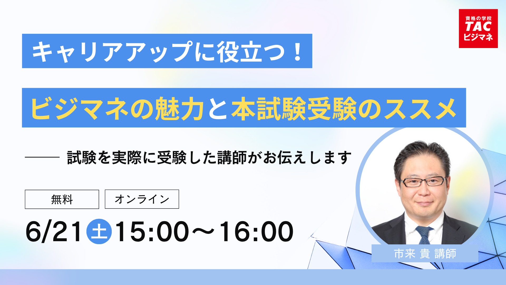 当セミナーは、講師自ら今回のシーズンを受験したうえで、主要論点の出題傾向の分析と合格するための対策をお伝えします。 今回のシーズンを受験した方はもちろんのこと、これからビジマネの学習を検討している方、ビジ法に興味のある方も満足いただける内容です。