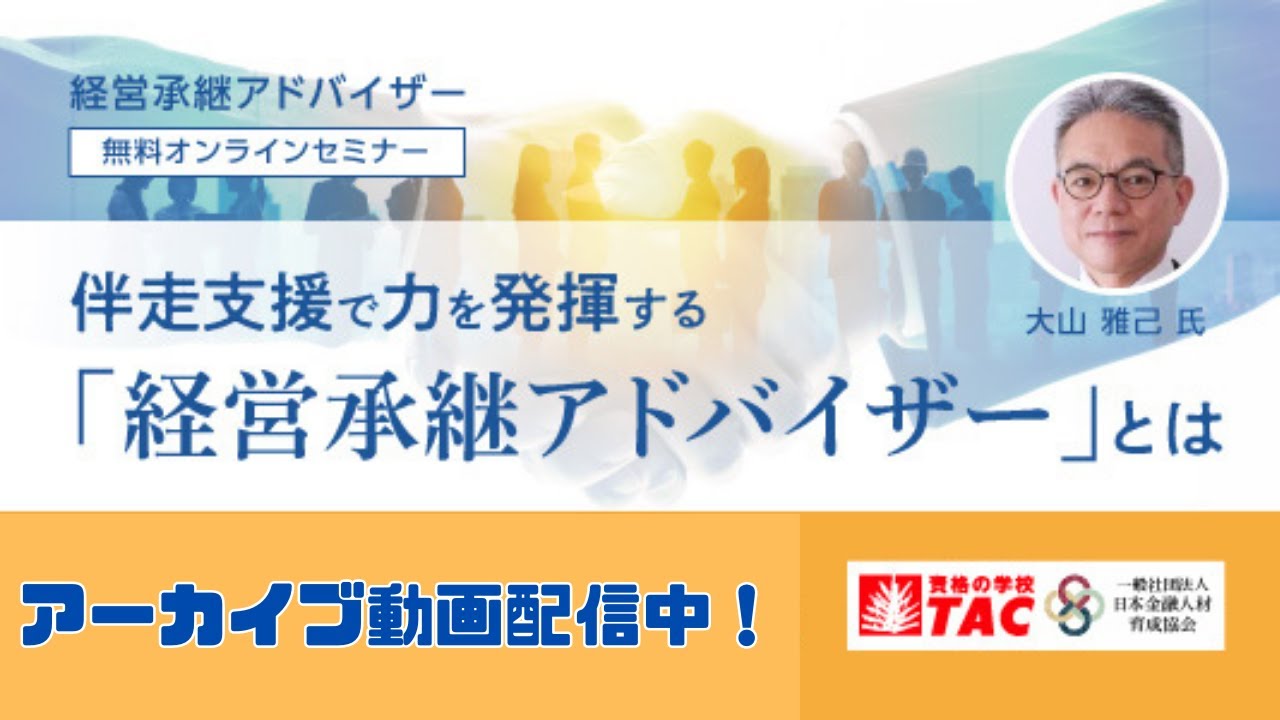 伴走支援で力を発揮する「経営承継アドバイザー」とは(担当:大山 雅己 講師)