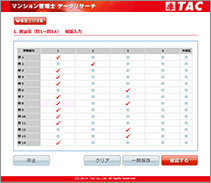 解答入力画面より、設問ごとの解答を入力してください。全科目の入力が終了しますと、判定画面に進みます。