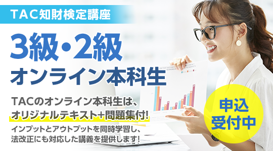 知的財産権の基礎を学び、3級(実技・学科)合格を目指すコース [Web通信(問題集付)受講料]¥22,000(教材費・税込) [Web通信(問題集無)受講料]¥19,800(教材費・税込) |