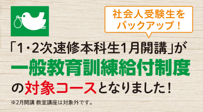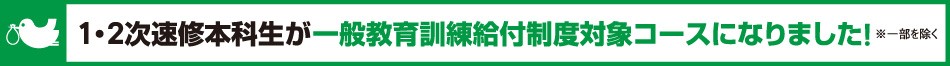 「1・2次速修本科生」は一般教育訓練給付制度の対象コースです