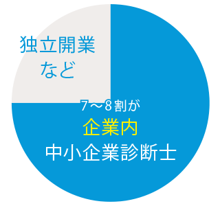 中小企業診断士の属性を2つに大別すると、独立開業している「独立中小企業診断士」と企業勤めをしている「企業内中小企業診断士」に分かれます。企業内中小企業診断士は、文字通り、企業で社員として働きながら、その知識を活かしいます。