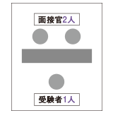 口述試験は、面接官2人対受験者1人という形式で実施されました(右図)。試験時間は受験者1人につき、約10分間で行われます。