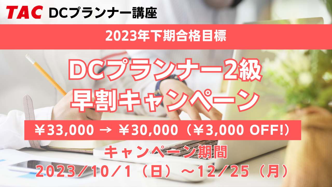 動画ではDCプランナー2級の合格率、受験するにあたってのポイントを簡潔にお伝えします。DCプランナー2級の合格を目指すなら、ぜひTACをご検討ください。