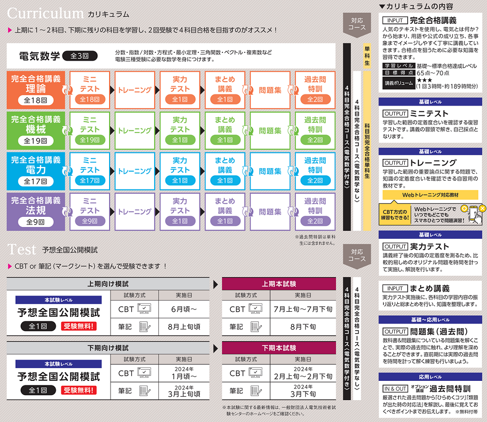25上期用&下期用の全2回、それぞれ4科目の受験権利付きなので『上期は力試し、下期は本気で受験』や『上期は電力と法規だけ、下期は残りの科目』など、学習のペースや受験計画に合わせて活用いただけます。