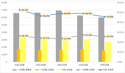 | 実施年度 | 受験者数(名) | 合格者数(名) | 科目合格者数(名) |