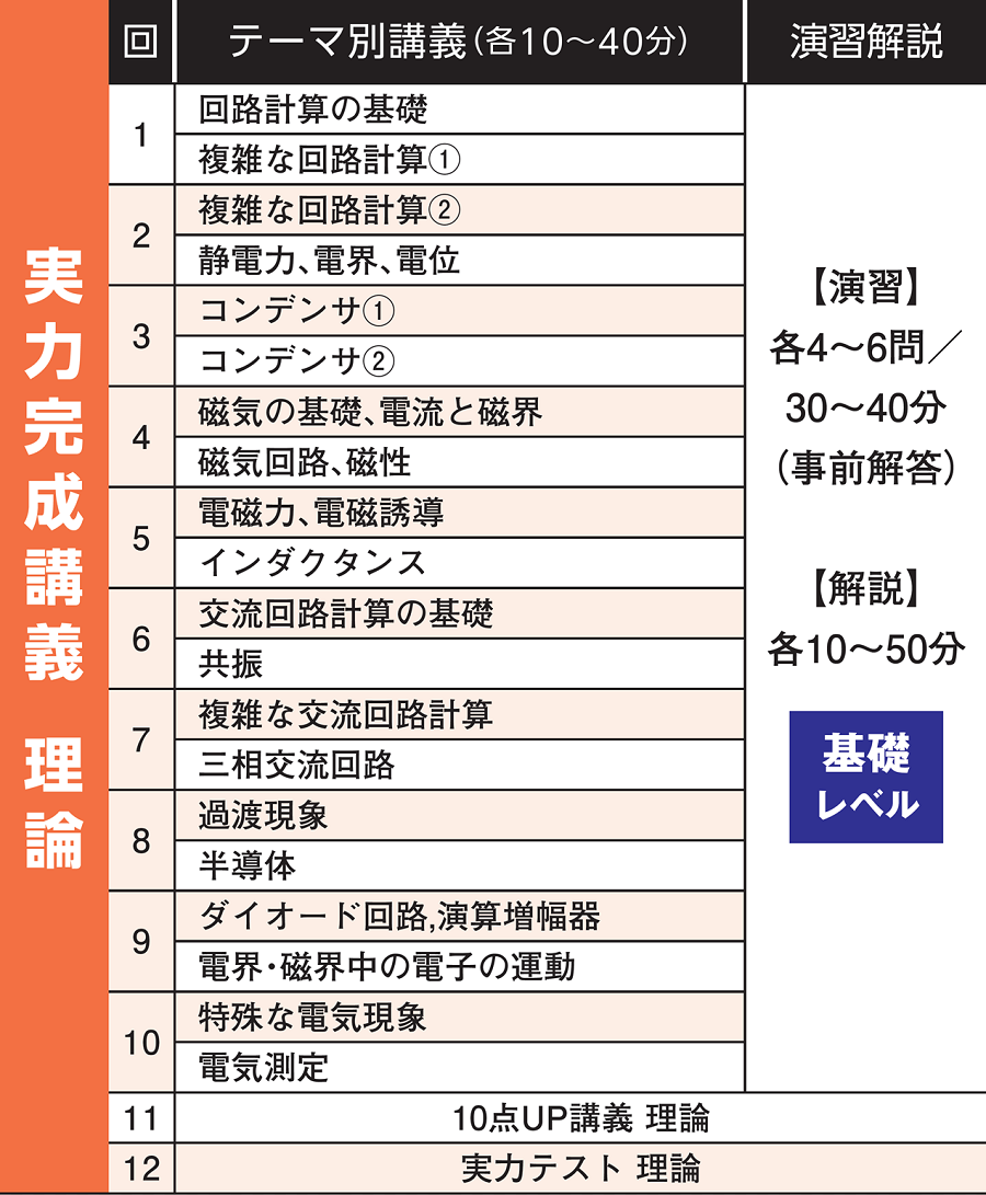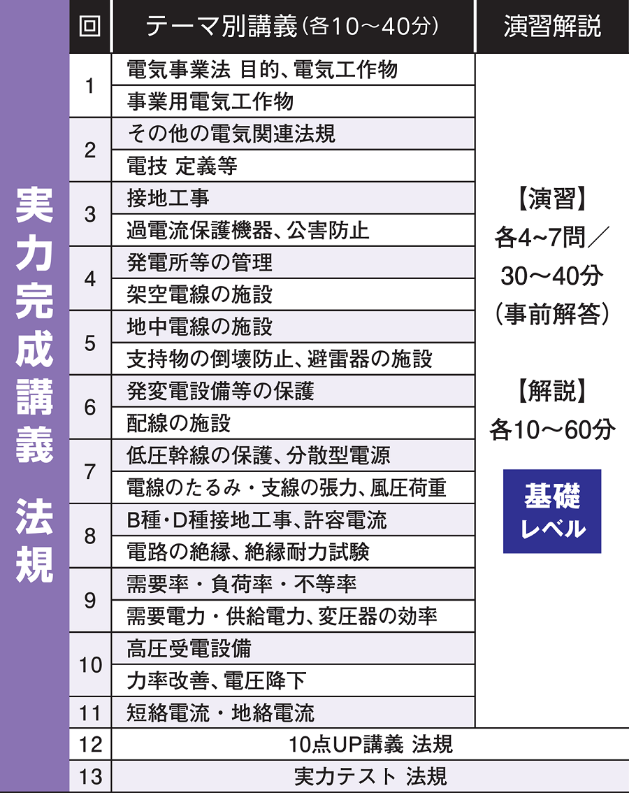 各テーマのポイントを押さえたうえで、その知識を使いこなせるかの演習を実施する実践講義。確実に合格を狙う細かい知識までを押さえ、本試験で80点を狙う、上位合格レベルの講義です。
