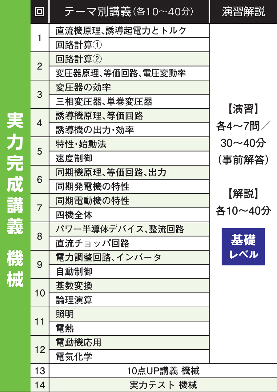 実力完成講義ではテーマ別に知識を確認し、過去問を徹底攻略!試験で解ける「解答力」を身につけます。