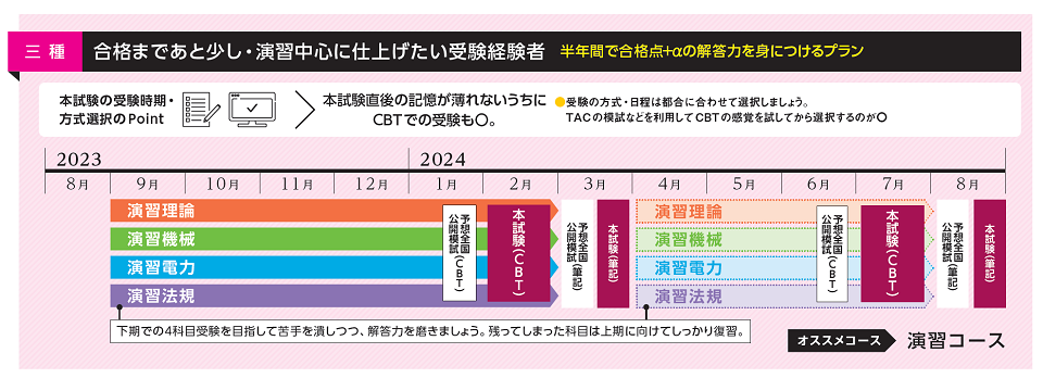 25下期用&26上期用の全2回、それぞれ4科目の受験権利付きなので『下期は力試し、上期は本気で受験』や『下期は理論と機械だけ、上期は残りの科目』など、学習のペースや受験計画に合わせて活用いただけます。
