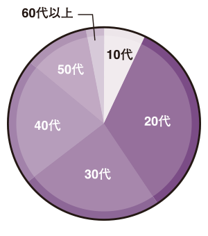 幅広い年齢層の方が受験していますが、なかでも40 〜60 代以上の方の割合が多いといえます。