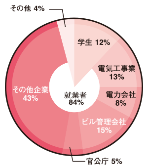 就業者が多く、電力業界以外の方も多く受験されています。