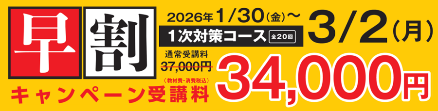 1次対策コース 再受講割引