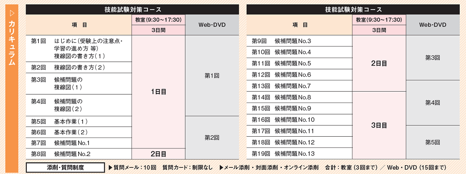 - 技能試験対策コースのカリキュラムには含まれません。ご希望の方は別途お申込みが必要です。