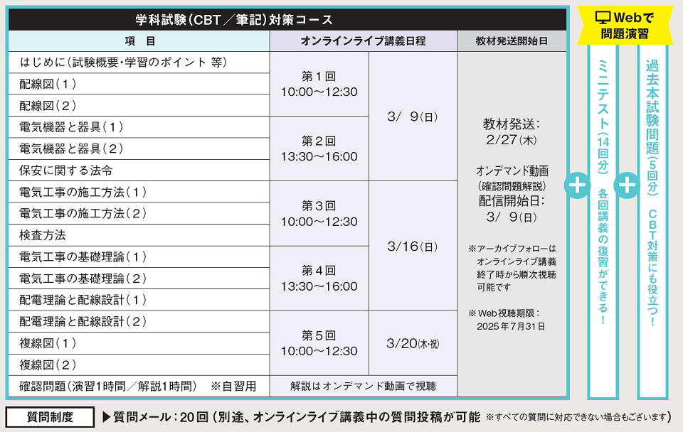 第二種【上期(4-5月)】学科試験(CBT/筆記)対策コース|教室+Web講座
