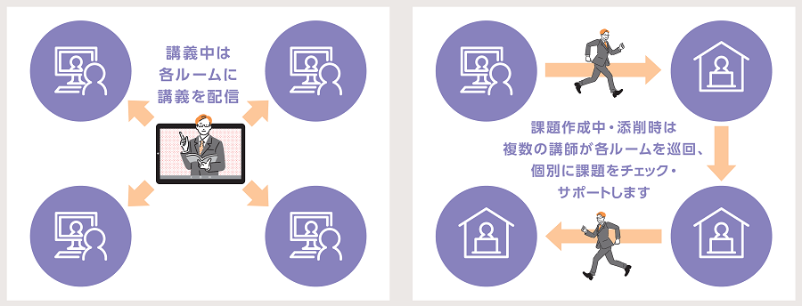 生講義に参加!個別のルームを講師が巡回、マンツーマンでサポート・添削!