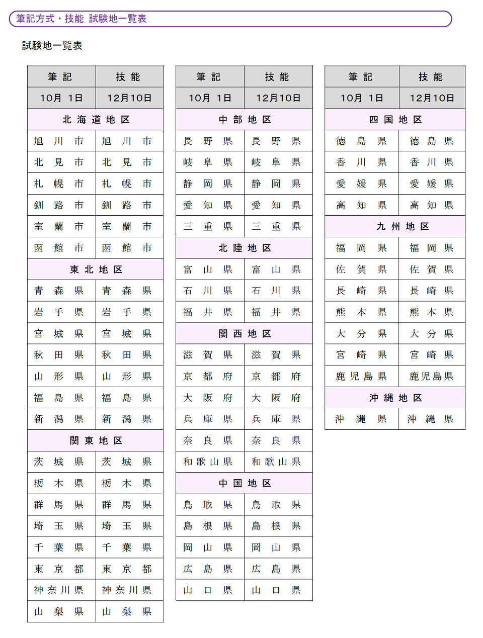 | 技能試験 | Web公表 | [上期]2025年7月25日(金) [下期]2025年12月12日(金) |