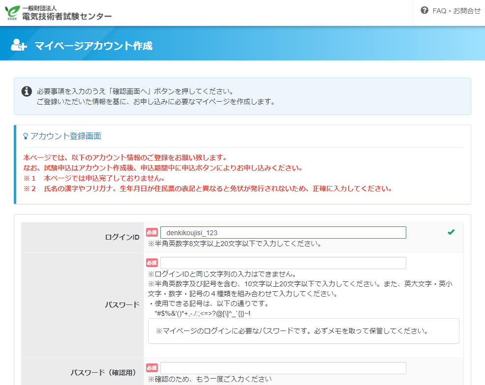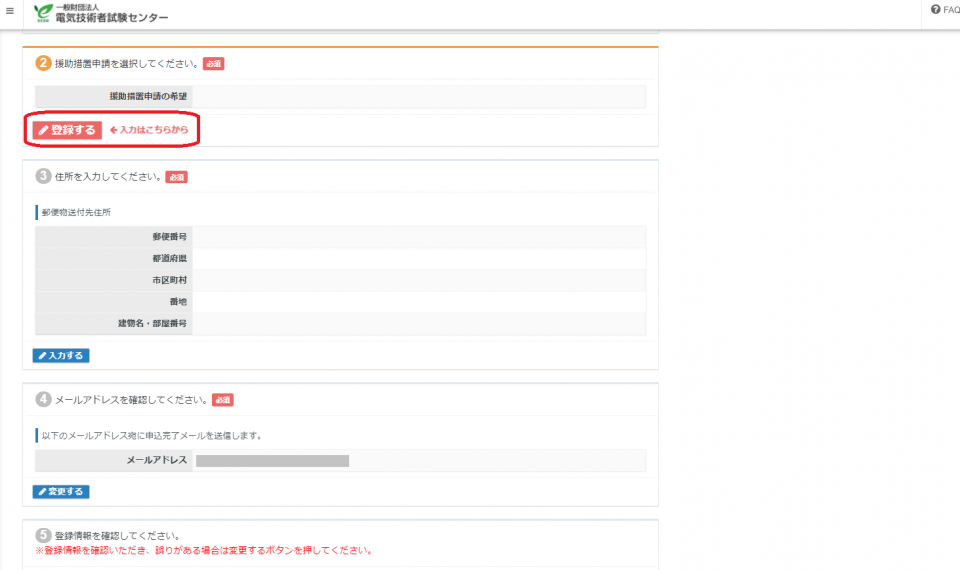 確認画面でもう一度入力事項の確認を行い、問題なければ「登録する」を押すと、マイぺージ登録は完了となります。この登録だけでは電気工事士を申込したことにはなりませんのでお気をつけください。