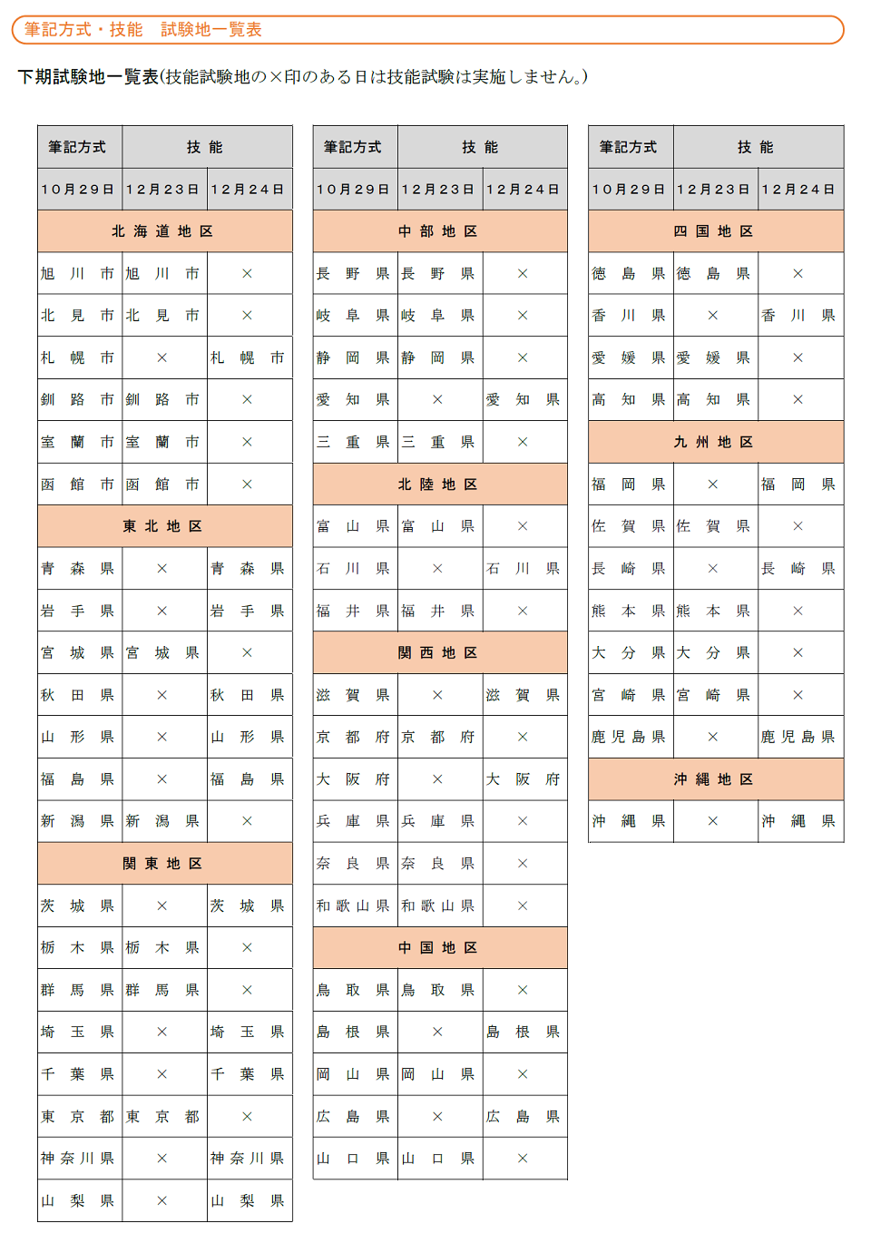 | 下期試験 | 2026年7月27日(月)~8月13日(木) | 【学科試験:CBT方式※1】2026年9月11日(金)~10月18日(日) 【学科試験:筆記方式※2】2026年10月4日(日) 【技能試験】2026年11月21日(土) |