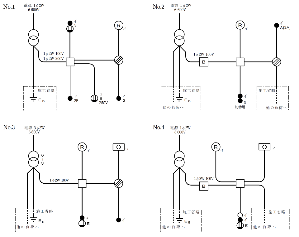 | 4.電気工事の施工方法 | ① 配線工事の方法 ② 電気機器及び配線器具の設置工事の方法③ コード及びキャブタイヤケーブルの取付方法 ④ 接地工事の方法 |