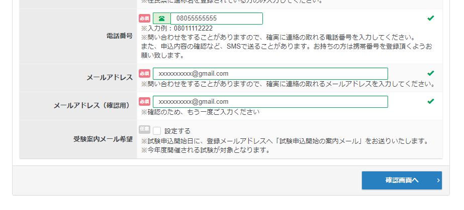 個人情報を登録する画面になります。必要事項を入力すればいいのですが、いくつか注意があります。