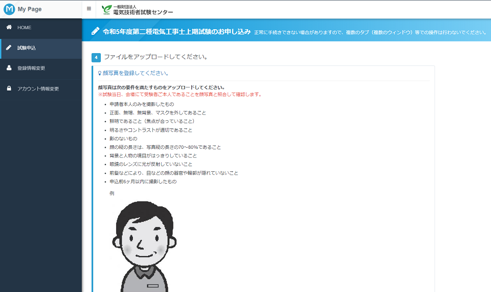 インターネットの場合、顔写真をアップロードする形になっています。事前に顔写真の画像を準備しましょう。画像をアップロード後、トリミングすることもできますので、スマートフォンやデジカメで撮影した画像で問題ありません。