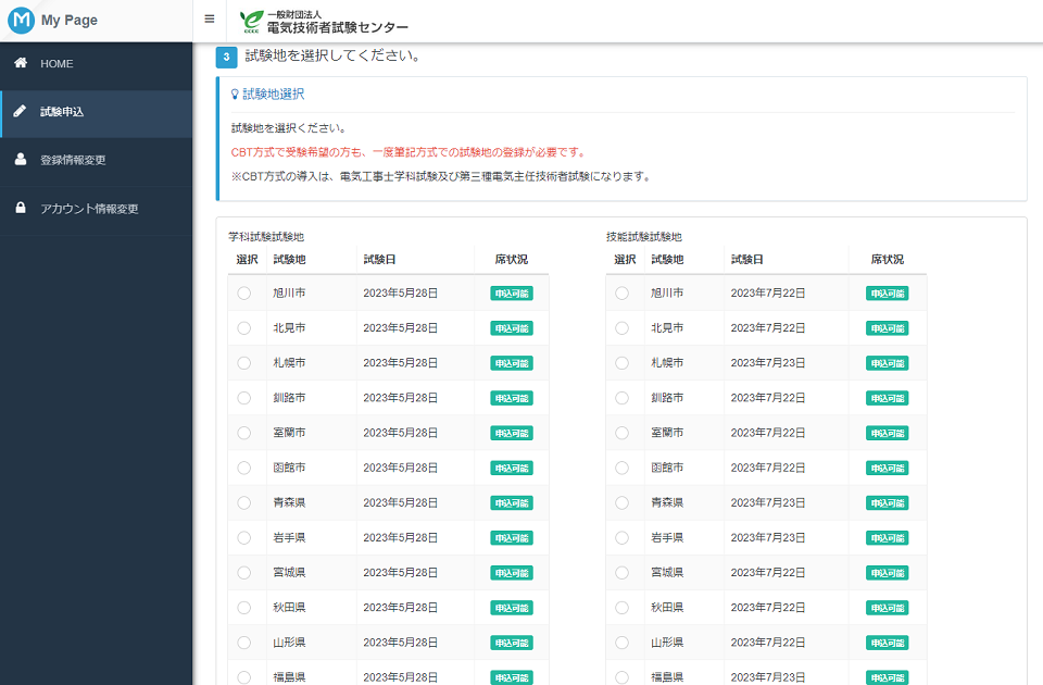 手続きの際、受験者は学科試験と技能試験の受験地を選択するようになっています。CBT方式での受験を希望される方は、CBT方式への変更期間にCBT会場予約をすることで、CBT会場・日時での受験が可能となります。