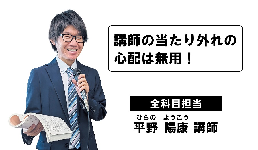 一次対策も二次対策も、講義については最初から最後まで看板講師の平野が担当します。