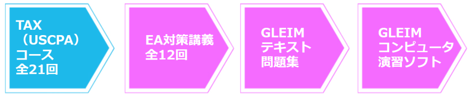 ※EA試験の範囲は、USCPA試験のTAX(REG&TCP)範囲と重複するため、基礎部分はUSCPA講座のTAXコースで学習していただき、EA対策講義で本試験対策を行っていきます。
