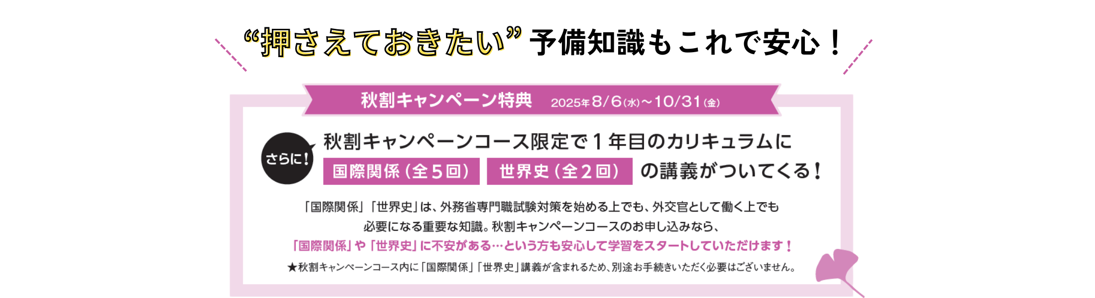通常受講料から1.1万円 OFF +「国際関係」「世界史」の特典講義がついてくる!