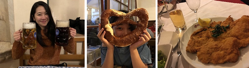 あるパブではビールが1Lジョッキからしか売られていなかったり、両手より大きなカツ(シュニッツェル)があったり、圧倒されました。最初は完食できなかった私ですが、慣れは怖いもので毎食きちんと完食するようになり、1年間の食いトレの成果は8キロ!学食ではそんなボリューミーな食事がたったの3ユーロで食べられちゃいます。
