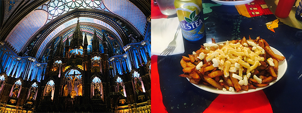 基本的に平日のランチはクラスメイトと、朝晩は自炊するような生活でした。金曜日の晩(TGIF!)や土日は友達と外食をしたり、飲みに行くなど、思いっきり楽しみました!珍しい物を食べるのが趣味で、現地ならではのゲテモノに挑戦しては、トイレにこもる羽目になりました(笑)。ヨーロッパのような美しい街並みや、歴史的建造物が多いこともモントリオールの大きな魅力です。冬にはウィンタースポーツを楽しむことができます。私も人生初のアイススケートに挑戦!痛かったです...。